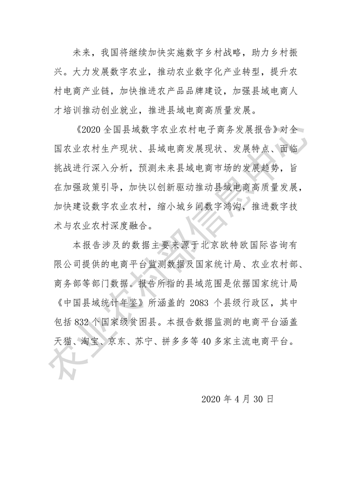 點(diǎn)擊查看完整報(bào)告:2020全國(guó)縣域數(shù)字農(nóng)業(yè)農(nóng)村電子商務(wù)發(fā)展報(bào)告.pdf
